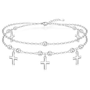 Cross Anklets for Women Cross Anklet Sterling Silver Beaded Multilayer Ankle Bracelets Dainty Layering Adjustable Chain Charm Jewelry Mothers Day Gifts
