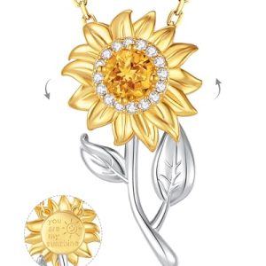 Flower necklace Sterling Silver Spinning Pendant, You Are My Sunshine Fidget Rotatable Jewelry Birthday Christmas Gifts for Women Wife Her