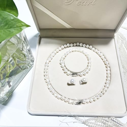 - 【Pearl Necklace Set】: You will receive a 3 piece freshwater pearl necklace set consisting of an 17-18 inch 7.5-8.5mm pearl necklace, a 7-7.5 inch pearl bracelet and 8-8.5mm pearl stud earrings. This classic pearl jewelry set is perfect for any occasion and clothes, wear it to formal events, dinner parties or night outs and you will be sure to make a splash and get complimented.